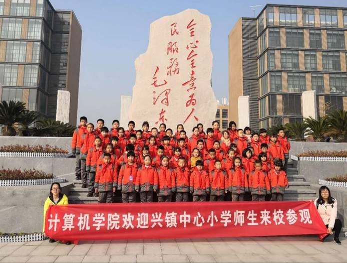 12月2日,兴镇中心小学师生一行70余人,在校长王兴社带领下应邀来到南校区参观交流。计算机学院党委主持工作的党文学副书记、学院团委书记潘超等陪同参观交流。在参观交流中,党文学对王兴社校长等师生一行的到来表示热烈的欢迎,兴镇中心小学校长王兴社对学院老师同学们的热情接待表示感谢。党文学说,10月17日学院师生去咱兴镇中心小学扶贫对接,这次邀请大家来校参观大学校园,体验大学生的学习和生活,目的是激发同学们发奋学习,追寻美好生活的激情。