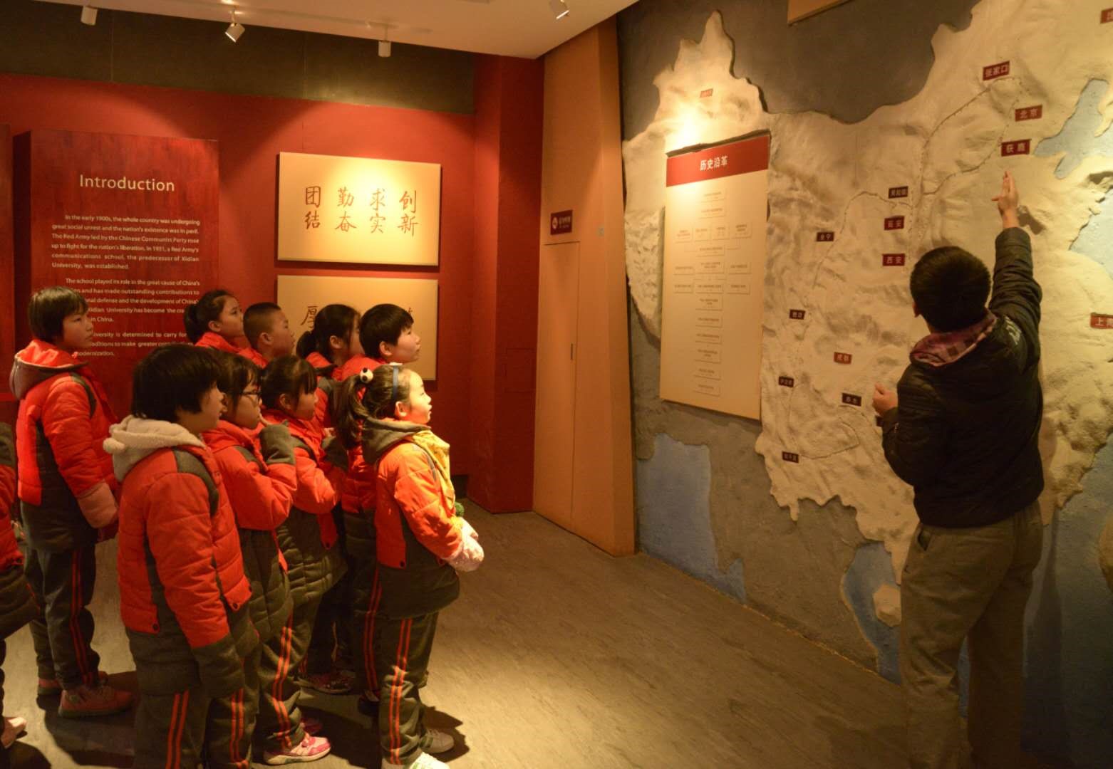 在学校校史馆,讲解员带领小学生们先后学习了解西电校址迁转的历史、参观了领导人的题词等。在讲到西电校训“厚德求真砺学笃行”时,学院辅导员黄彩红老师鼓励小学生们要好好学习,天天向上,做一名守纪律,爱学习的好学生。