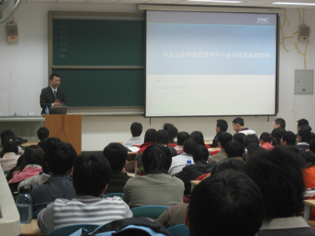 为配合《存储技术基础》课程的实施,于2007年11月13日19:00-21:00,在新校区信远楼2区117教室,世界杯平台邀请EMC公司刘磊工程师为计算机学院05级本科生作了《信息生命周期管理和中小企业信息基础架构》的技术讲座。刘磊工程师结合实际案例,说明了当前存储技术的发展情况。在整个讲座过程中,同学们表现出浓厚的兴趣并积极参与互动,现场气氛热烈,取得了良好的效果。