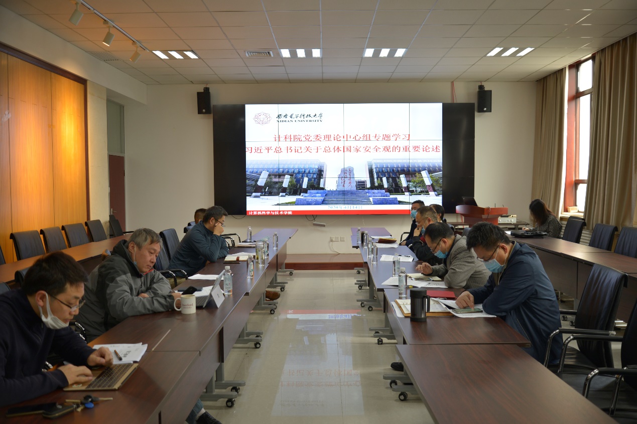 学院执行院长崔江涛以新冠肺炎疫情为切入点,从经济安全、网络安全等方面谈体会。国家发展是以人民满意为出发点,学院则要以师生满意为宗旨推进各项工作。学院党委副书记张莹莹谈到,总体国家安全观丰富了国家安全的内涵和外延。无论是作为高校教师还是普通公民,维护国家安全都是我们应尽的职责。教师应推动课程思政,落实三全育人,结合思想政治教育引导学生树立国家安全观念,积极维护国家安全。学院副院长赵韩强从维护科技安全和维护网络安全两方面谈到,高校作为培养高素质人才的主阵地,教师应从原创性科学研究、加强学生价值观的引领方面作出更多贡献。学院副院长沈玉龙谈到,科研工作要立足解决实际问题,服务国家重大战略需求,助力国家科技进步。习近平总书记提出“没有网络安全就没有国家安全”。作为一名教师,作为一个党员干部,要提升政治站位,保持清醒头脑,引领学生树立正确的网络安全观。学院副院长苗启广、计算机科学系党支部书记戚玉涛均说到,作为教师要深刻把握新时代坚持总体国家安全观的重要意义。新冠肺炎疫情防控充分体现了我国的制度优势,应加强学生网络意识形态安全教育。计算机工程系主任李龙海结合教学科研实际,就网络安全的五大特点谈体会。网络安全形势日趋严峻,需要不断调整防御手段,加强网络防范。学院办公室主任向麟海谈到,生物安全是国家总体安全的重要组成部分,办公室正在推进学生返校前的开学准备和提前预防工作。
