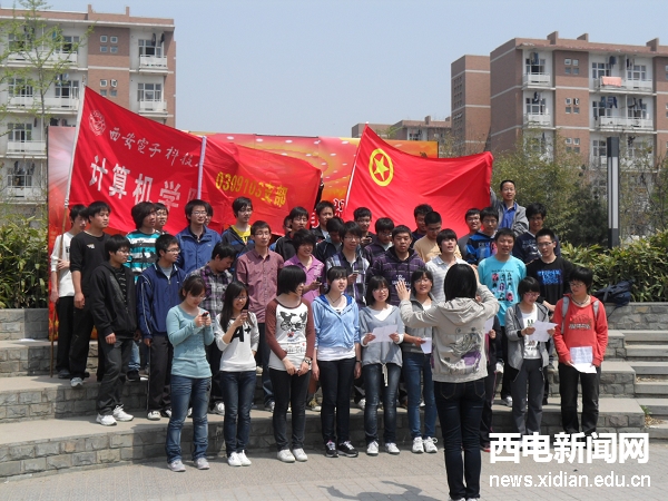 西电新闻网讯(通讯员 王迪 沈淑秋)2011年4月14日正午,计算机学院“五四红歌会”于竹园餐厅门口拉开帷幕。该活动有校团委主办,各院系团委协助举行,旨在以怀念革命老歌为载体激发同学们的爱国之情。