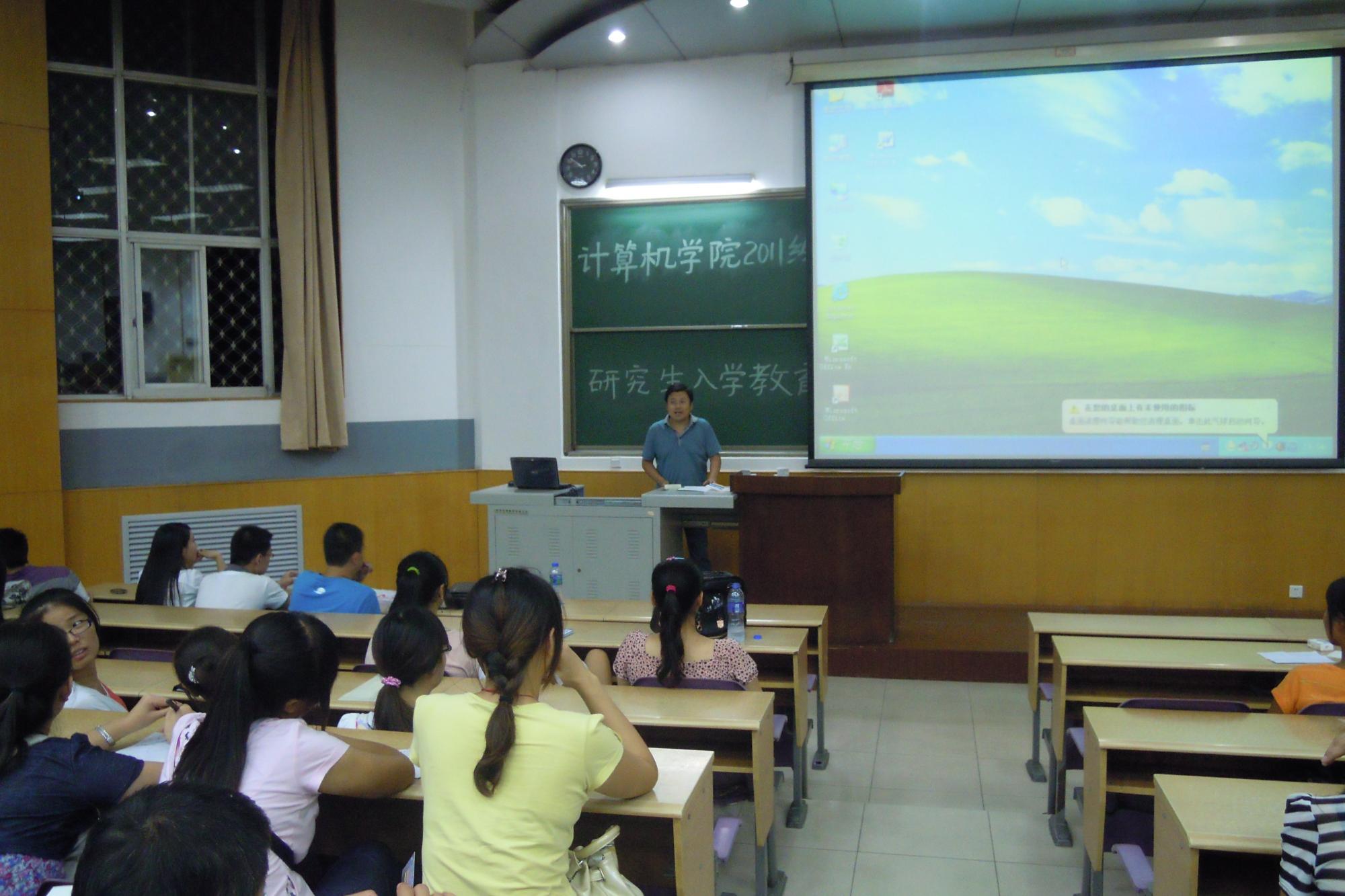 8月26日晚,计算机学院在北校区J114教室召开了2011级研究生新生入学教育工作大会。计算机学院党委副书记王卫东、学院办公室主任向麟海、辅导员张尚伟老师出席了这次会议。全院2011级研究生新生参加了本次会议,会议由张尚伟老师主持。本次会议旨在指导新生尽快适应研究生的学习和生活,尽快了解研究生阶段的特点和要求,进而点燃新生为理想奋斗的激情。