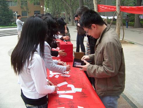在活动现场,有很多老师和同学为地震灾区伸出援手,献出爱心,有些人甚至没有留下名字就匆匆离去,在此向他们表示感谢,也希望玉树灾区的人们能尽快从悲伤中走出来,重新建设美好的家园。