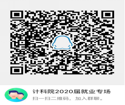宣讲采取QQ群线上直播的方式,扫描下方二维码,验证学号姓名即可加入群聊【计科院2020届就业专场】。