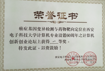1.研究所师生团队研发的《癌症基因变异检测与药物靶向定位》系统,在西安电子科技大学计算机专业设置60周年之计算机创新创业论坛上,获得壹等奖。