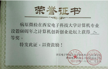 2.研究所师生团队研发的《病原微检》系统,在西安电子科技大学计算机专业设置60周年之计算机创新创业论坛上,获得貮等奖。