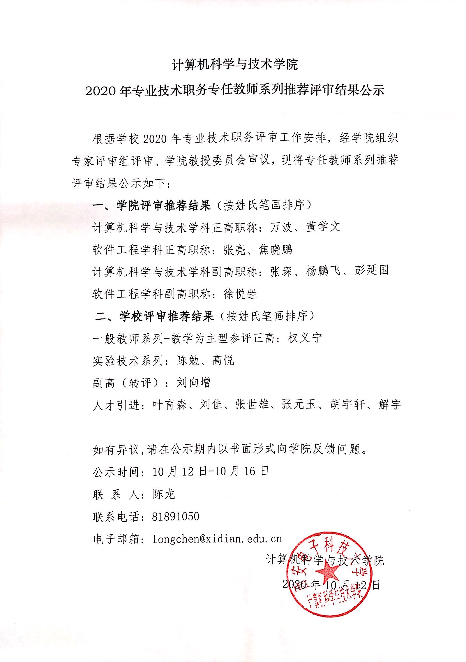 世界杯(中国)2020年专业技术职务专任教师系列推荐评审结果公示