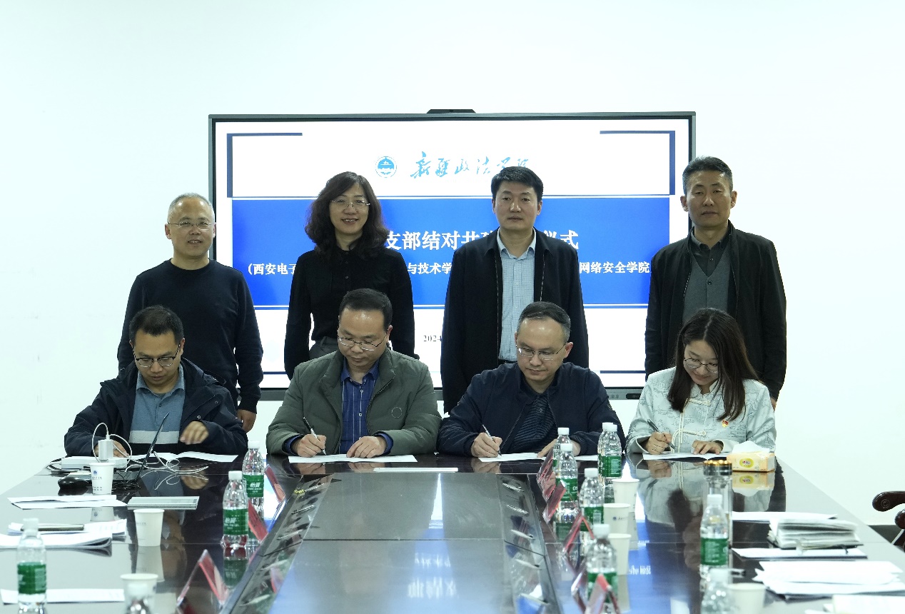 新政信息网络安全学院教师党支部与西电世界杯(中国)计算机科学系党支部、实践教学中心党支部、辅导员党支部现场签署结对共建协议。两院四支部将以共建为起点,积极发挥组织育人功能,加强沟通联系和资源共享,共同推进支部党建和育人工作双促进。