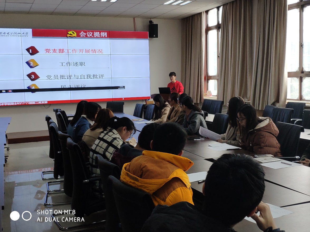会议第二阶段,全体支部成员广泛开展批评与自我批评。党支部支委刘汪洋、高璇、张欢、介茜、赵鹏带头开展自我批评,全体党员依次进行个人自评和党员互评。在民主评议过程中,每位党员都能结合自己学习、工作、生活等实际表现,用具体事例说话,指出自己和其他党员同志存在的问题和不足。在党员个人自评和党员互评基础上,党支部向每位党员发放西安电子科技大学党员民主测评表,按照“优秀”“合格”“基本合格”“不合格”四种等次对每位党员进行投票测评。结合测评结果和党员日常表现,确定介茜、王奥博、刘汪洋、许芳、张欢、赵鹏(姓氏笔画为序)6位同志测评结果为“优秀”,其他党员测评结果为“合格”。