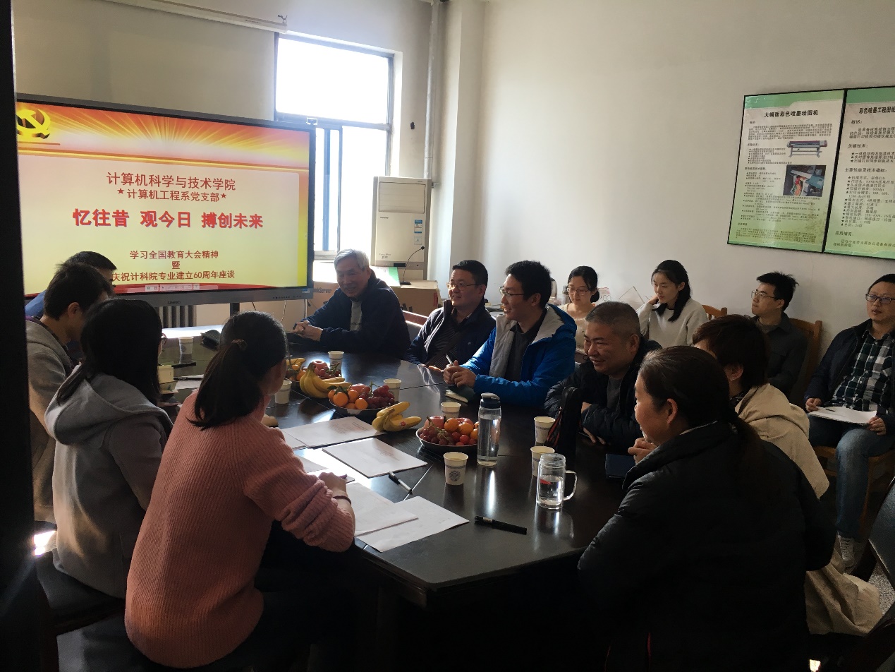 (通讯员 鱼亮 姚勇 杨鹏飞)为深入学习党的十九大报告和习近平总书记全国教育大会讲话精神,庆祝世界杯(中国)建专业60周年,计算机工程系党支部于2018年11月9日下午举行以“忆往昔 观今日 搏创未来”为主题的座谈会。通过此次座谈活动,进一步加强了基层党组织思想建设和学院优秀历史传统传承。计算机工程系党支部书记鱼亮主持了此次活动,世界杯(中国)执行院长崔江涛教授、计算机工程系党支部委员、多位党员和教师共同参加了此次座谈。本次座谈活动特别邀请到学院周利华教授,与大家分享学院历史、发展脉络和成就。