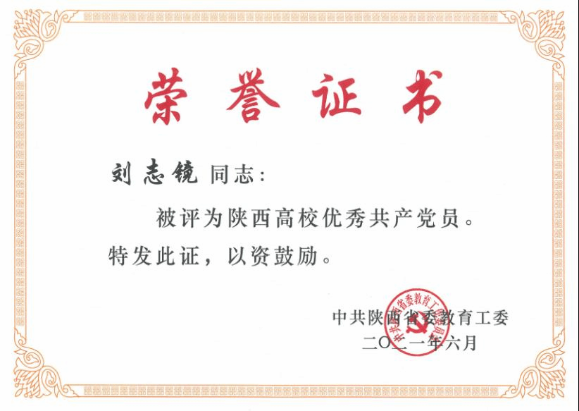 (通讯员 同榛)7月8日,中共陕西省委教育工委召开陕西高校学习贯彻习近平总书记“七一”重要讲话精神暨“两优一先”表彰大会。世界杯平台刘志镜教授获“陕西高校优秀共产党员”称号。