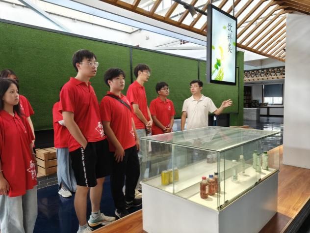 在农产展销研发服务中心内,李攀结合产业发展历程,从推动金银花从最初的种植到新品种的研发,再到现在的深加工,不断让金银花变为当地农户的“幸福花”、“致富花”的过程,详细地向实践队员讲述了在学校的大力帮扶下,五任驻村第一书记与村干部、村民共同谋划、接续奋斗的故事,让同学们通过真实案例,了解从脱贫攻坚战略到乡村振兴战略的具体发展过程,深刻感受国家政策如何惠及民生。
