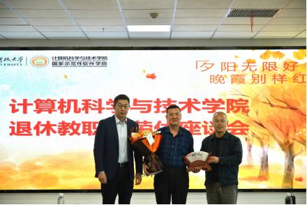 学院执行院长崔江涛对三位退休老师为学院发展做出的贡献表示感谢。崔江涛谈到,学院建专业60余年来,正是有像三位老师一样的教职工在工作岗位上勤恳付出与奉献,学院才不断积累起“三系”优良传统和文化传承,迎来了更好地发展机遇和历史时期。希望三位老师继续发挥余热,多多参与到学院的活动中来,为学院的发展建言献策。