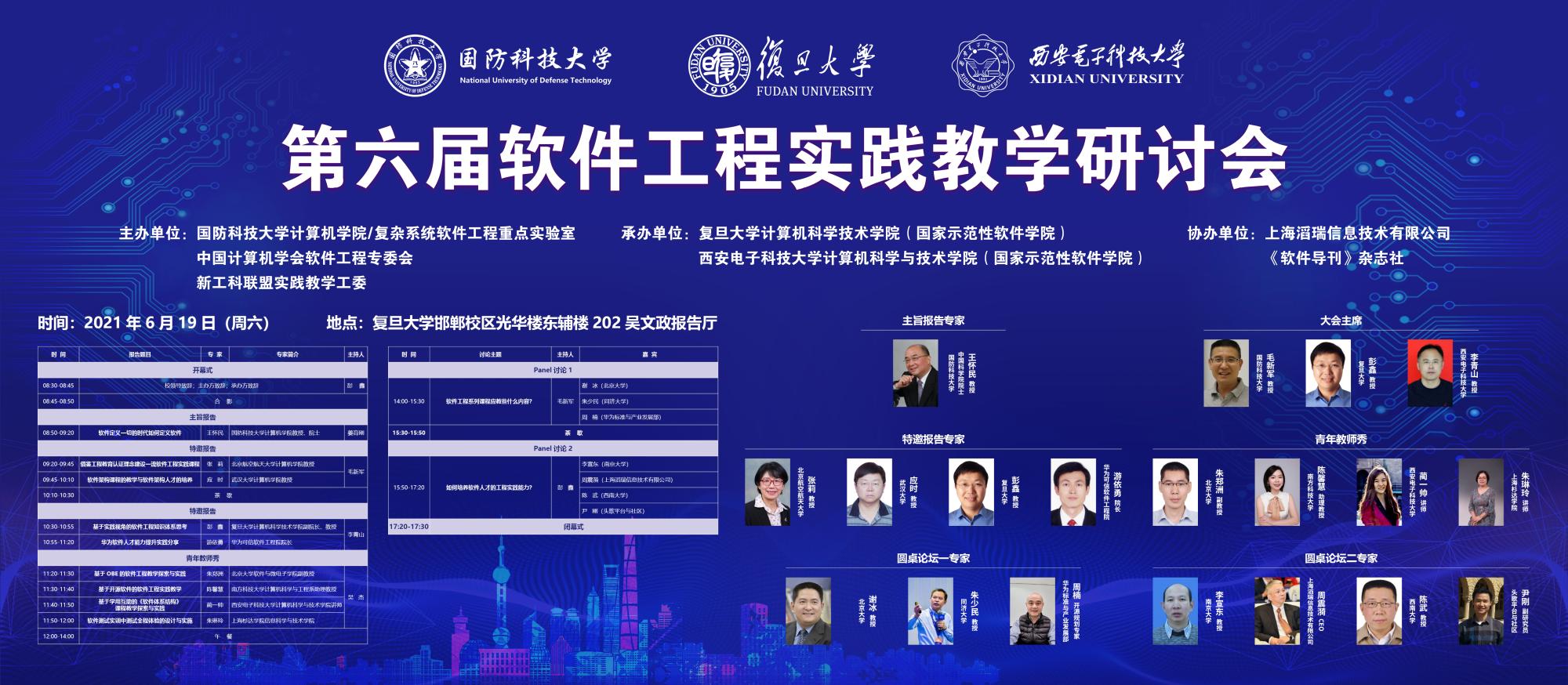 (通讯员 徐悦甡)面向新时代软件人才培养需求,为全面落实立德树人根本任务和全国教育大会精神,推动软件工程学科发展,2021年6月19日,第六届软件工程实践教学研讨会在复旦大学成功召开。本次研讨会由国防科技大学计算机学院及复杂系统软件工程重点实验室、中国计算机学会软件工程专委会、新工科联盟实践教学工委主办,复旦大学计算机科学技术学院(国家示范性软件学院)、西安电子科技大学世界杯(中国)(国家示范性软件学院)联合承办。国防科技大学复杂系统软件工程重点实验室副主任毛新军教授,复旦大学计算机科学技术学院副院长彭鑫教授,世界杯平台党委书记、软件工程学科负责人李青山教授担任会议联合主席。