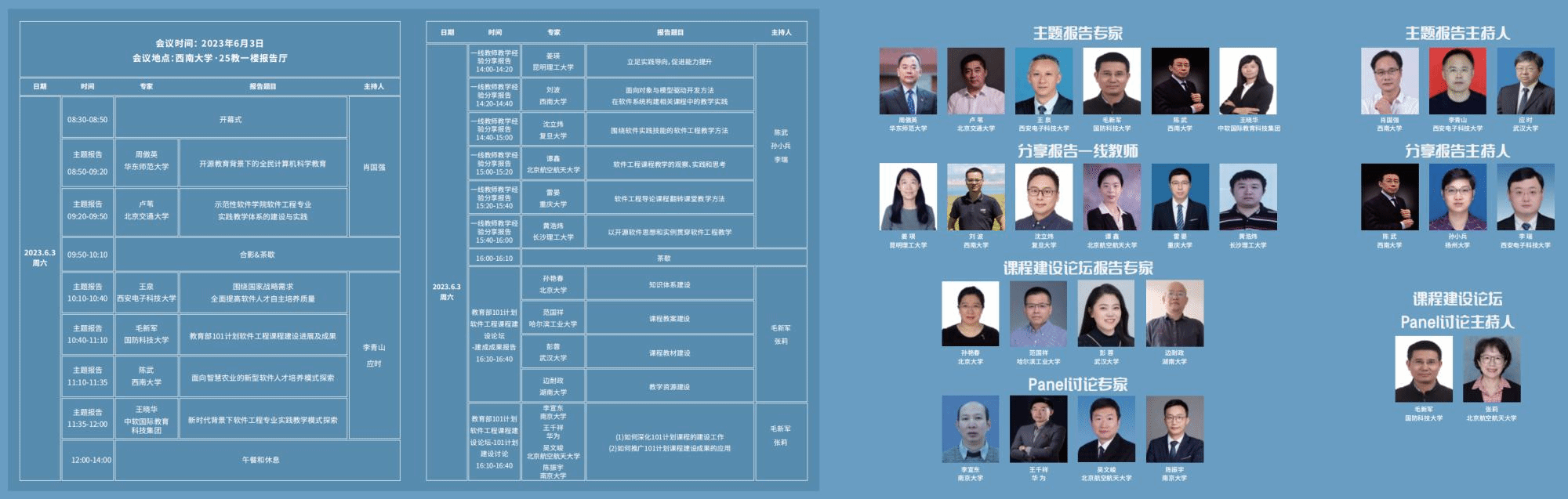 本次研讨会内容包括主旨报告、特邀报告、一线教师教学经验分享以及教育部101计划软件工程课程建设论坛四部分。主旨报告嘉宾是华东师范大学副校长周傲英教授、北京交通大学卢苇教授、西安电子科技大学副校长王泉教授。周傲英教授以“开源教育背景下的计算机科学教育”为主题,强调做好中国的开源教育,要树立更高的价值观,发展更好的技术,孕育更包容的文化,产生更有效的制度。卢苇教授在“示范性软件学院软件工程专业实践教学体系建设”报告中阐释了以边学习-边实践-再学习-再实践为主线构建课程实训、学期实训、企业实习的多层次螺旋式提升能力的实践教学体系以及应用成效。王泉教授以“围绕国家战略需求全面提高软件人才自主培养质量”为报告主题,分析了我国软件人才培养的现状和存在的问题,梳理了国家相关激励政策。从数字化转型和产教融合、科教融合的角度,给出了提高软件人才自主培养质量的思考和实践。