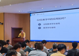 国防科技大学计算机学院讲师卢遥作《基于Git的软件工程实践教学平台及实施》报告,分享了版本管理软件Git的使用,并结合具体的实操演示了如何基于Git开展课程实践的版本管理和协同开发。