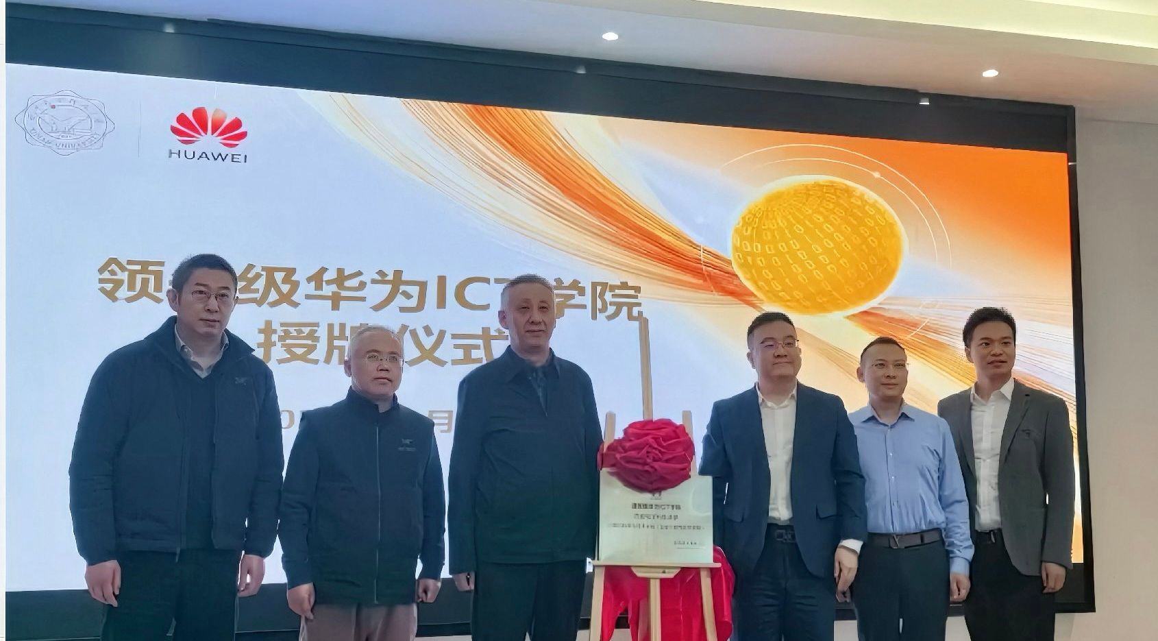 会上,王泉、李青山、崔江涛与华为郭金亮、彭军、魏彪共同为西安电子科技大学“领先级华为ICT学院”授牌。