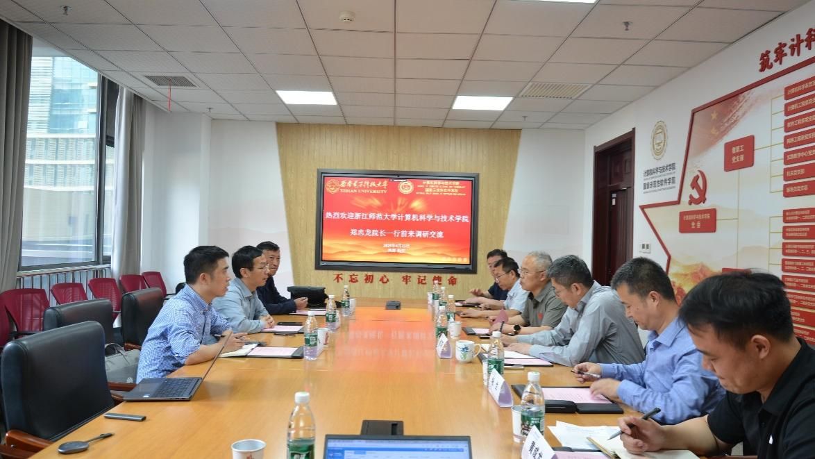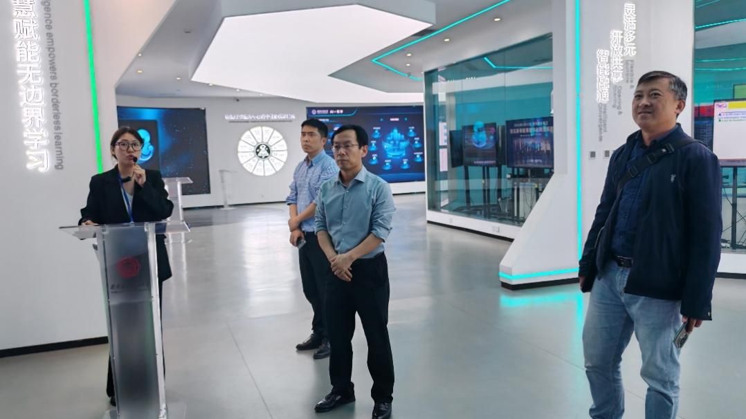 双方就学科建设、高层次人才队伍建设、学生管理、国际化等方面深入研讨交流,为后续双方深入合作奠定基础。会后,郑忠龙一行参观了学院校史馆和AI+教育中心,详细了解学校人工智能+教育标杆大学建设取得的成果等内容。
