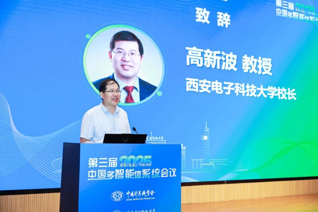 在开幕式上,西安电子科技大学校长高新波教授对2025第三届中国多智能体系统会议在西安召开表示热烈祝贺。他指出,人工智能已成为新一代信息技术的灵魂,是数字经济发展的基础,是制造强国、网络强国、数字中国建设的关键支撑。西安电子科技大学瞄准国家重大战略需求,致力打造支撑国家电子与信息领域高水平科技自立自强的科技创新体系,强化有组织科研和集成攻关,近年来在人工智能、计算机科学与技术、软件工程等相关学科和领域深耕细作、不断创新,希望以此次大会为契机,进一步加强、深化合作交流,协同创新、共谋发展,共同为我国新时代人工智能产业发展和相关支撑学科人才培养贡献更多智慧和力量!